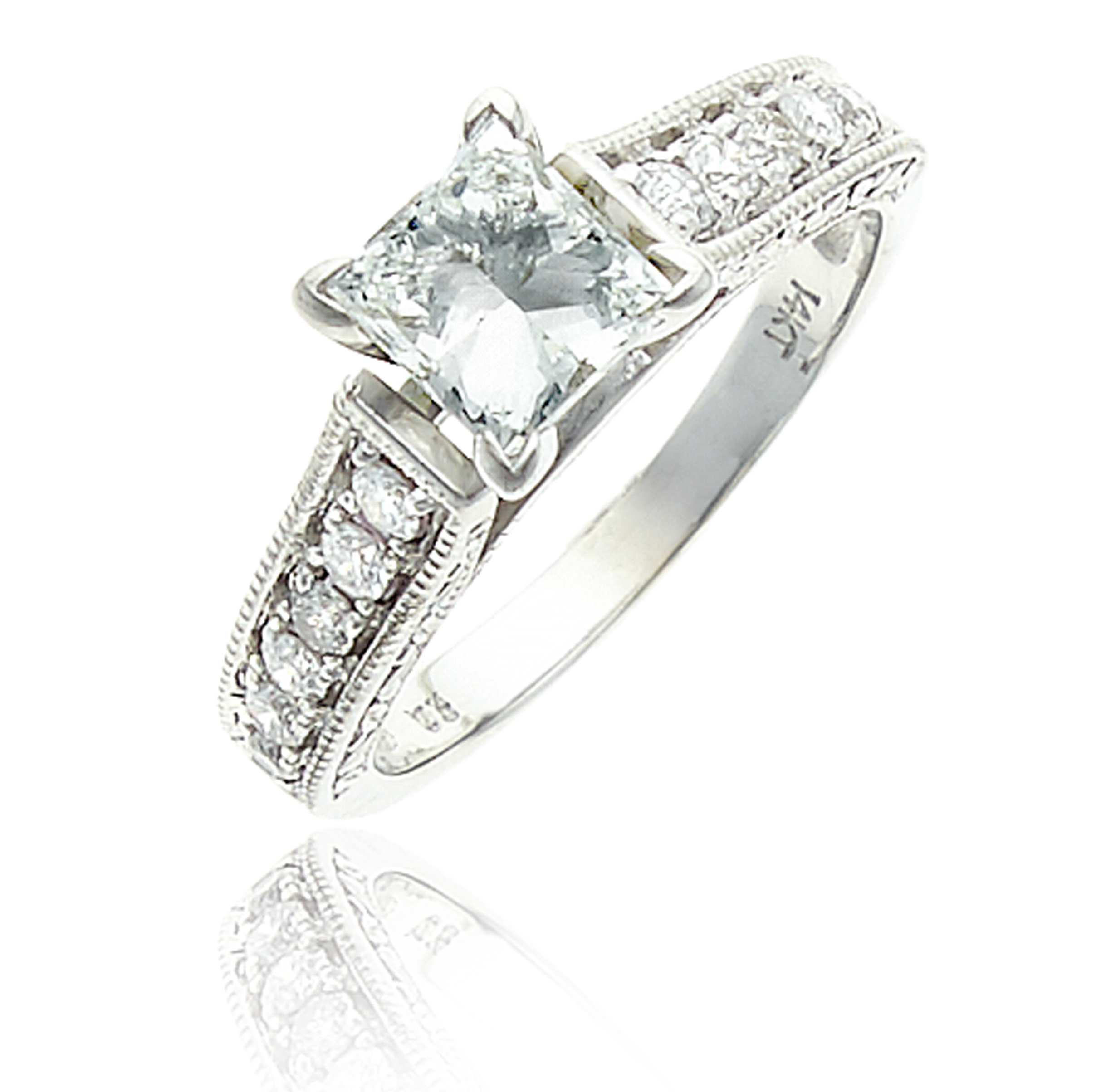 1.6 ctw. Princess Cathedral with Milgrain Design