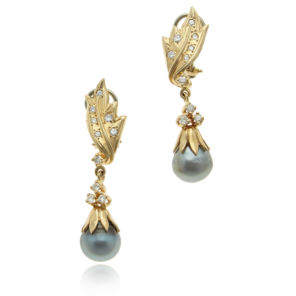 Diamond & Tahitian Pearl Earrings, 18K, $2,800